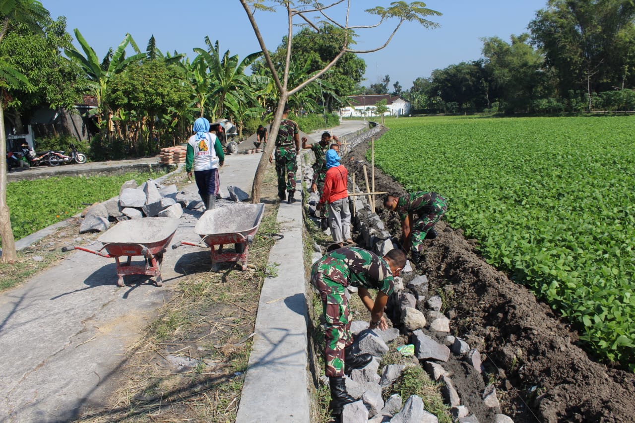 Keberadaan pengerjaan talud saluran irigasi yang berada di Dukuh Kuncen Desa Barepan Kecamatan Cawas Kabupaten Klaten saat ini menjadi prioritas personel Babinsa di Koramil 20 Cawas Kodim 0723/Klaten.