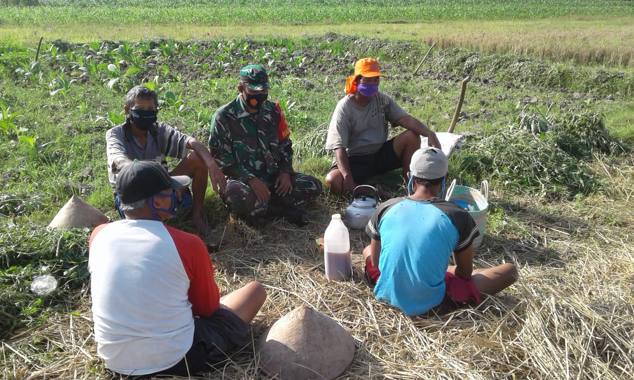Babinsa Kurung Koramil 23/Ceper Kodim 0723/Ceper Sertu Prajuarsa berkeliling (anjangsana) ke wilayah guna mendengarkan keluhan petani terkait kendala dalam mengolah lahan pertanian selama musim kemarau, Kamis (27/08/2020)