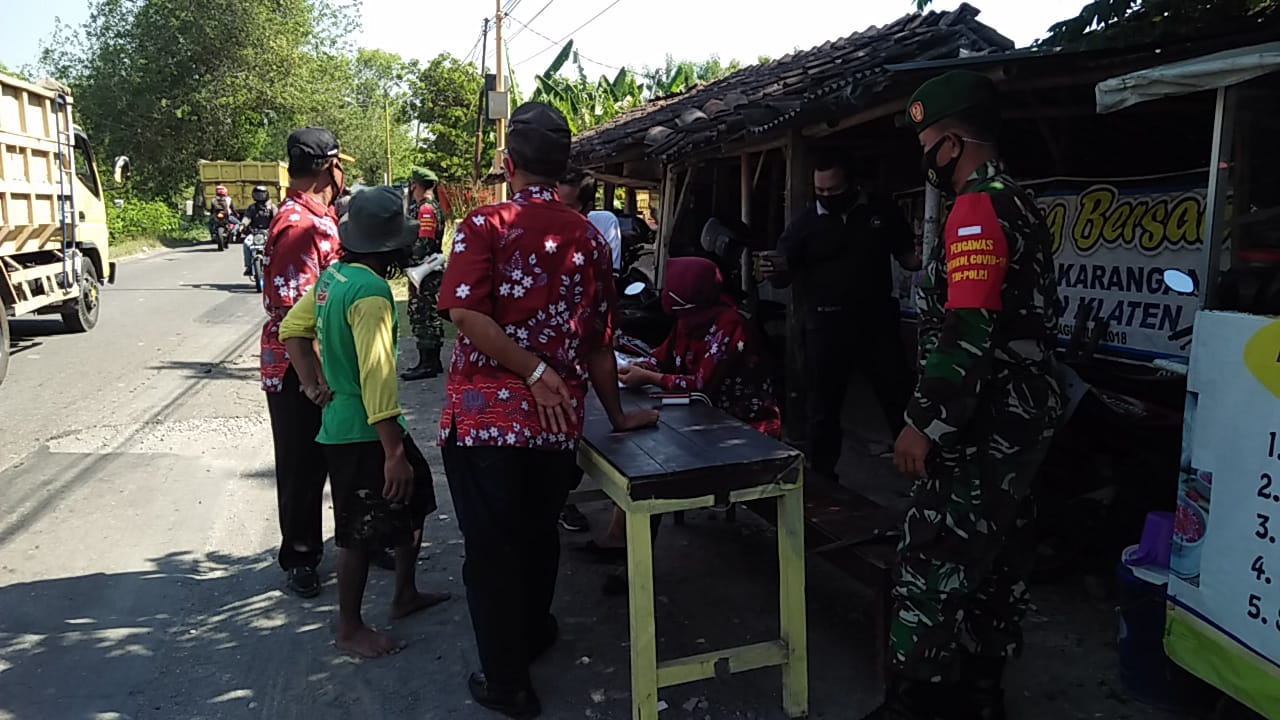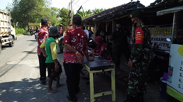 Antisipasi penyebaran virus corona (Covid-19) kepada masyarakat, dilakukan oleh Koramil 23/Ceper Kodim 0723/Klaten bersama Satgas Terpadu Penanganan Covid-19, rutin menggelar Patroli Penegakan Disiplin Protokol Kesehatan di sejumlah wilayah binaan.
