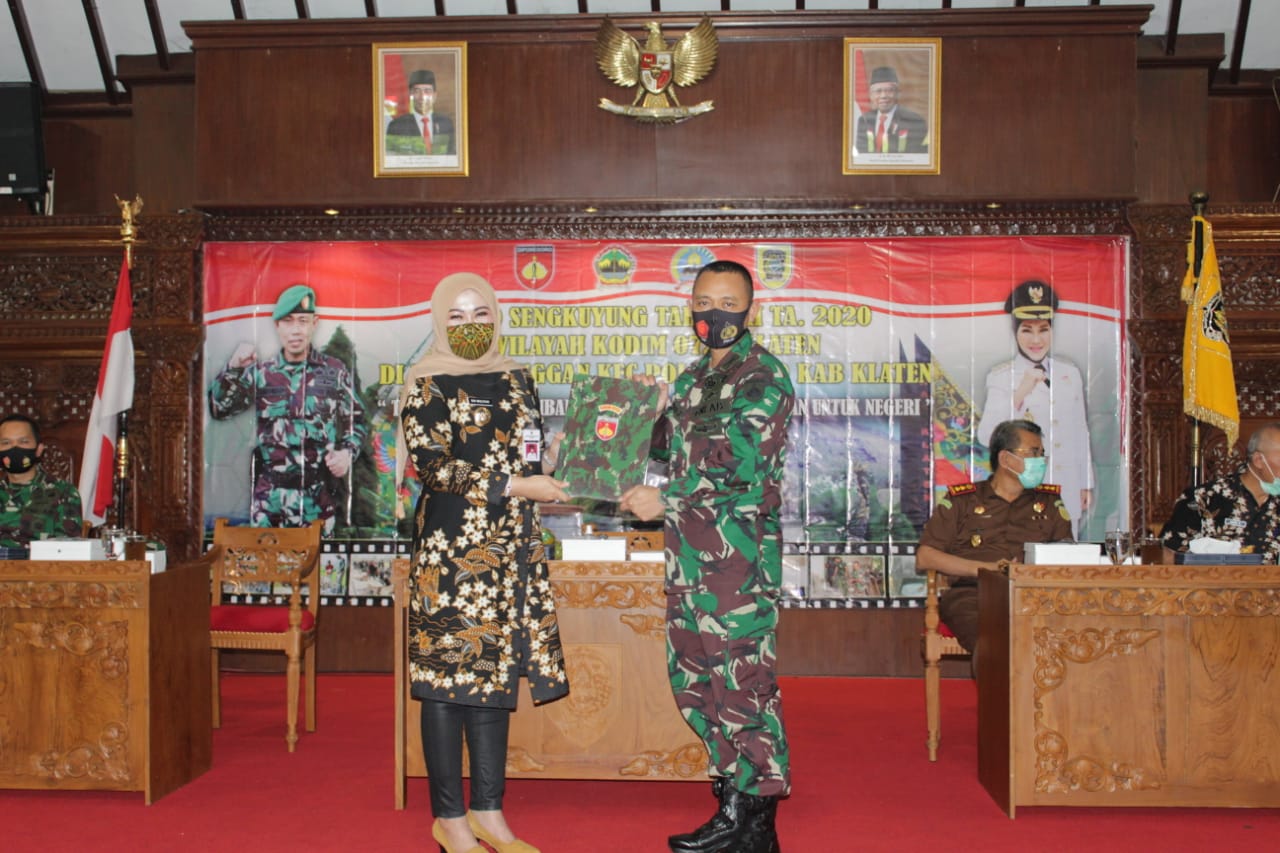 Kodim Klaten – Pembukaan TMMD Sengkuyung tahap III TA. 2020 wilayah Kodim 0723/Klaten, telah dilaksanakan di Pendopo Kabupaten Klaten dengan thema TNI Manunggal Membangun Desa (TMMD) Pengabdian untuk Negeri oleh Hj Sri Mulyani Bupati Klaten. Selasa (22/09/20)