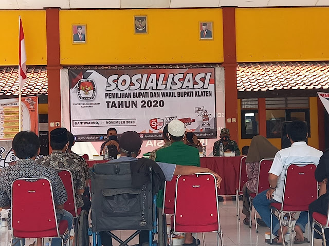Batituud 10/Gantiwarno Pelda Susanto menghadiri acara sosialisasi pemilihan Bupati dan Wakil bupati kabupaten Klaten di aula pendopo Kecamatan Gantiwarno, Rabu (25/10/2020).