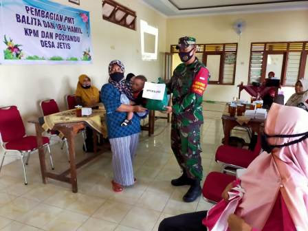 Tingkatkan Kesehatan Balita dan Ibu Hamil, Babinsa Hadiri Penyerahan PMT