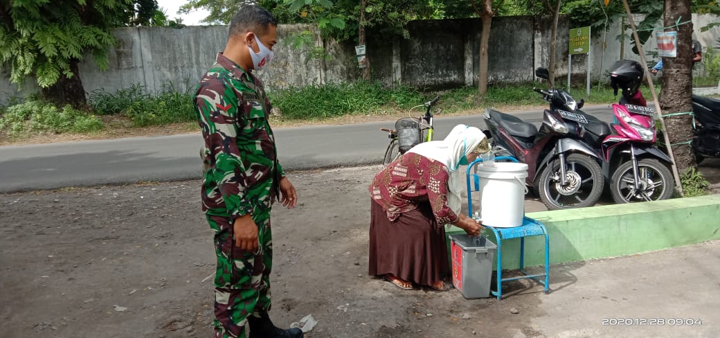 Sosialisasi 3M yang di laksanakan oleh Babinsa dengan memberikan himbauan Pencegahan Covid-19 kepada warga binaannya yang berkerumun dengan selalu menerapkan 3M atau menggunakan masker, mencuci tangan dan menjaga jarak.