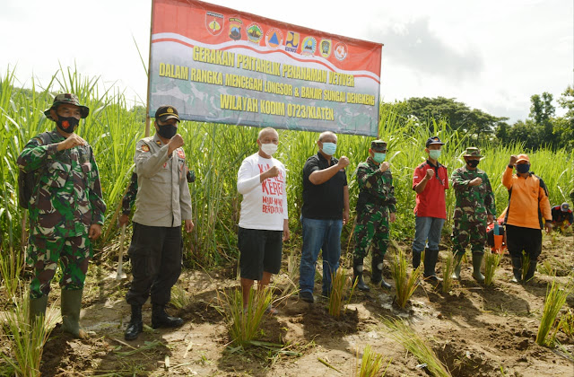 Cegah Tanah Longsor, Kodim bersama BNPB dan Relawan Klaten Tanam Vetiver