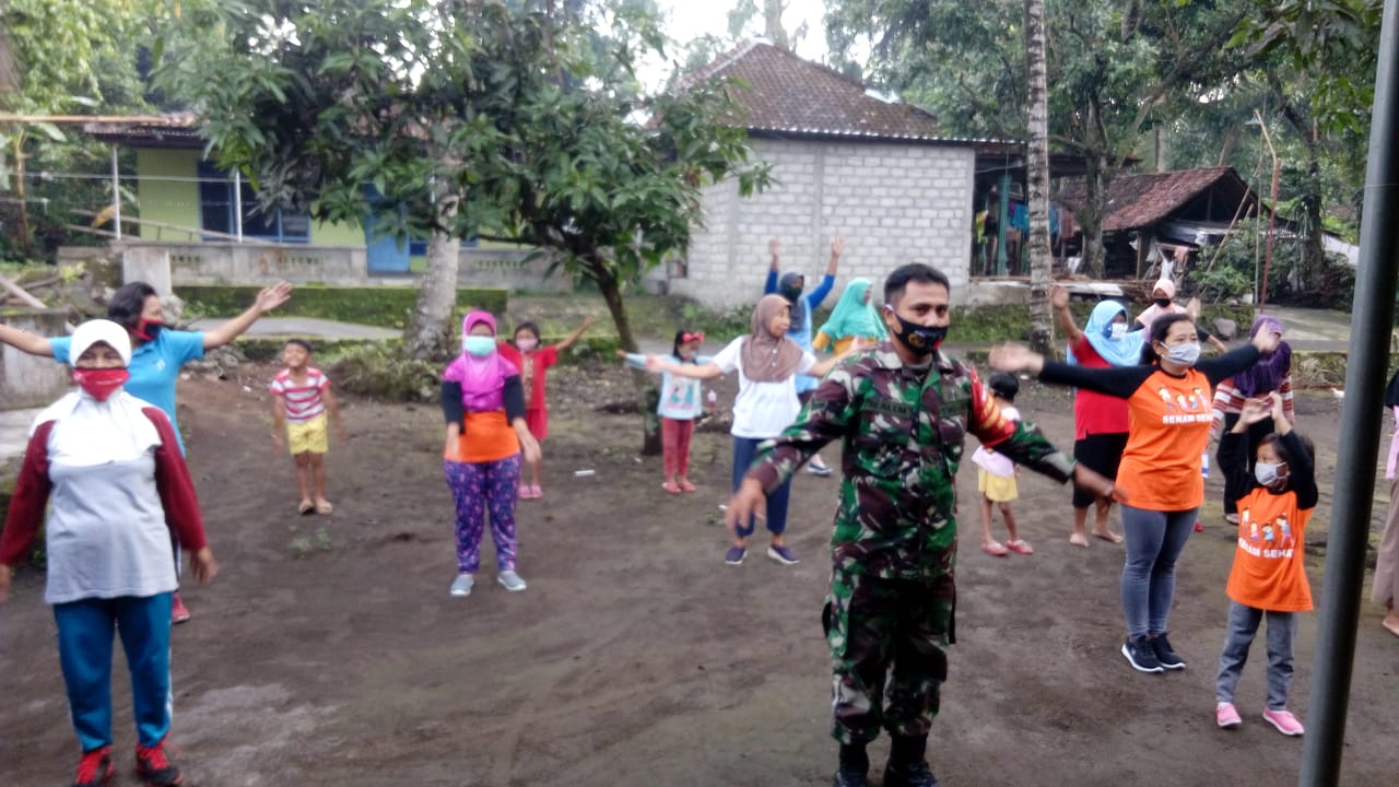 Klaten – Babinsa Desa Kranggan Koramil 12/Manisrenggo Sertu M Ali bersama warga masyarakat melaksanakan senam pagi bersama yang bertempat di Dk Gotakan Ds Kranggan Kec Manisrenggo, Minggu (27/12/2020).