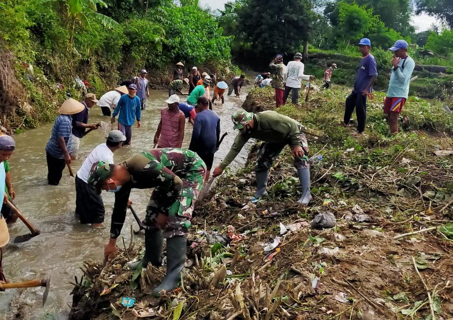 Klaten | Koramil Cawas Gotong Royong bersihkan Sungai Bersama Masyarakat