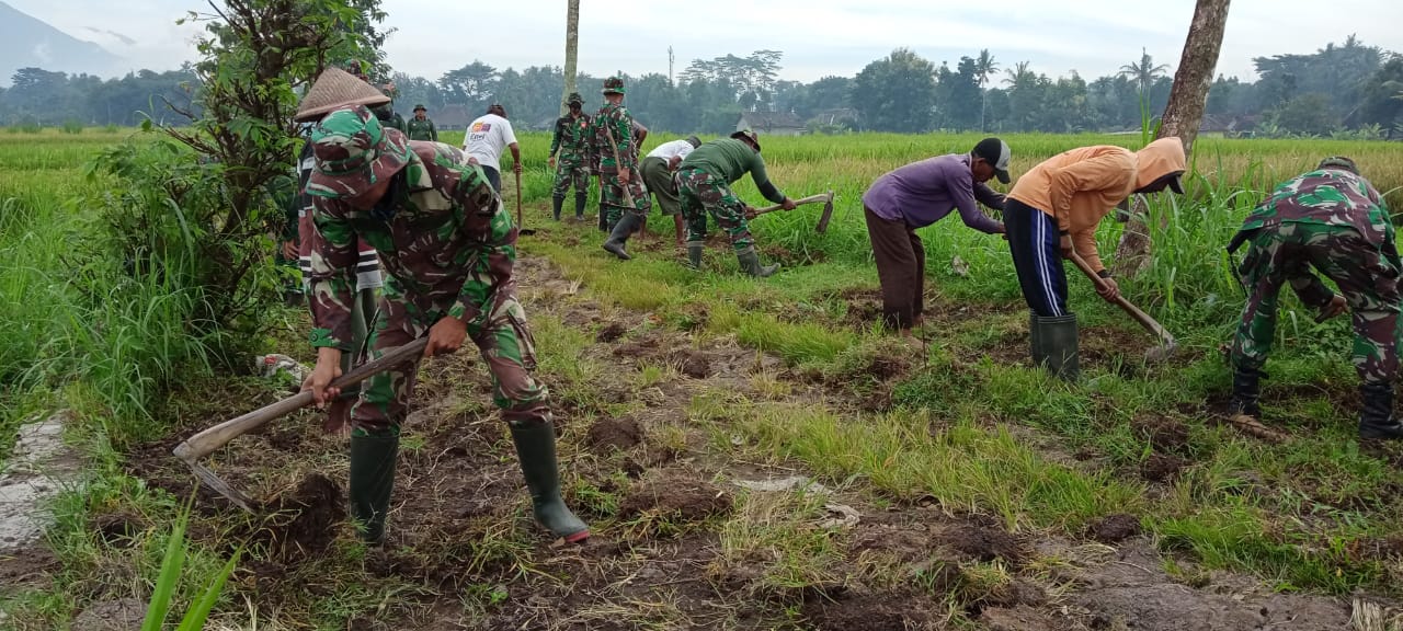TNI bersama masyarakat bersatu padu melanjutkan pembersihan dengan gotong-royong dan kebersamaan serta semangat, hal tersebut dikarenakan warga sudah tidak sabar jalan tengah sawah agar dapat di betonisasi dengan baik.