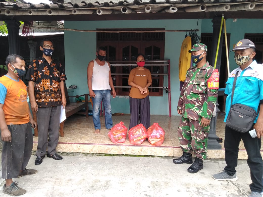 Klaten – Babinsa Munggung Koptu Sutrisno,Anggota Koramil 17/Karangdowo,Kodim 0723/Klaten, Bhabinkamtibmas dan Kepala Desa mendampingi gugus tugas Covid desa untuk memberikan sembako bagi warga yang isolasi mandiri.Dukuh kregolan Rt 23 RW 08 Desa Munggung.Kamis (25/02/2021)