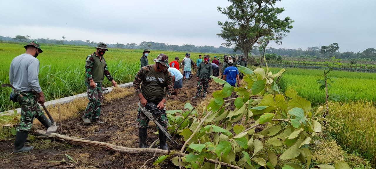 Klaten – Personel Koramil Jajaran Kodim 0723/Klaten bersama masyarakat melaksanakan kegiatan Pra Karya Bakti Mandiri Klaten Bersinar (KBMKB) Tahap ke VIII TA.2021 di Desa Tambakan, Kecamatan Jogonalan, Kabupaten Klaten. Kamis (25/02/2021)