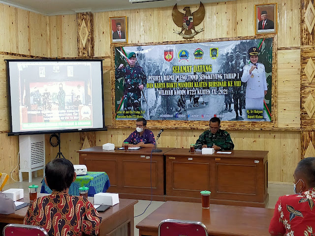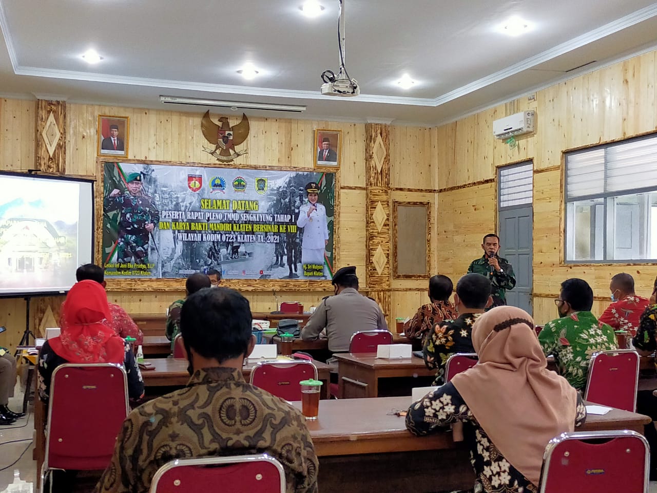 Klaten – Rapat Pleno TNI Manunggal Membangun Desa (TMMD) Sengkyung Tahap I dan Karya Bakti Mandiri Klaten Bersinar ke VIII wilayah Kodim 0723 Klaten di Kantor Dispermades Kab. Klaten Jl Teratai, Kampung Pondok, Klaten tengah, Kab Klaten. Selasa (23/02/2021).