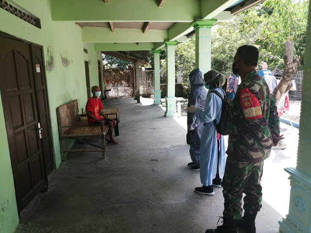 Klaten – Babinsa Munggung Koptu Sutrisno Anggota Koramil 17/Karangdowo,Kodim 0723/Klaten Bersama Bidan desa,Bidan Puskesmas Karangdowo Dan kepala desa Munggung melaksanakan Tracing Warga yang kontak erat dengan pasien terkonfirm Covid 19,di dukuh pencil RT 08 RW 03 Desa Munggung,kec Karangdowo,kab Klaten.Kamis (25/03/2021).