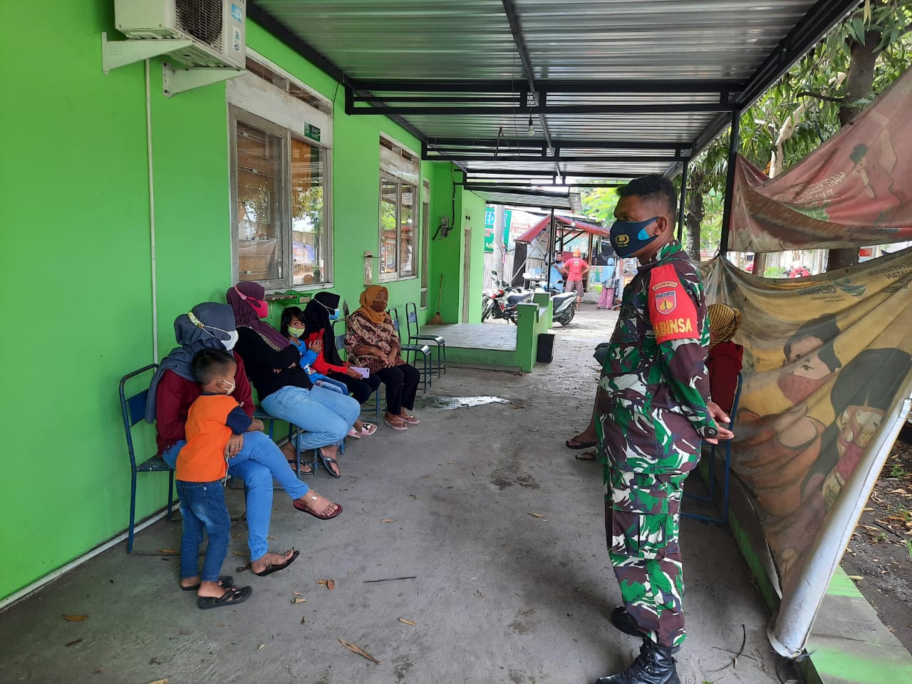 Klaten | Babinsa Koramil 23/Ceper Kodim 0723/Klaten Sertu Zulkifli bersama beberapa anggota melakukan pendampingan terhadap warga binaan yang melaksanakan tes swab di Puskesmas Ceper, Kecamatan Ceper Kabupaten Klaten, Senin (22/03/2021).