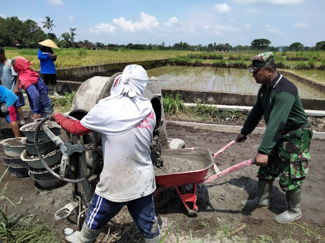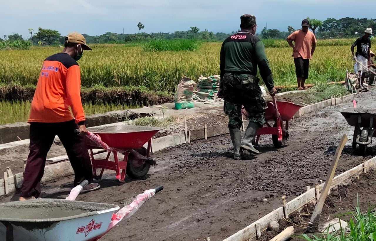 Babinsa Kodim Klaten Kerja Bakti Pengecoran Jalan Di Wonosari