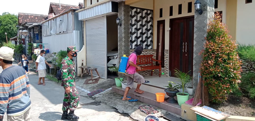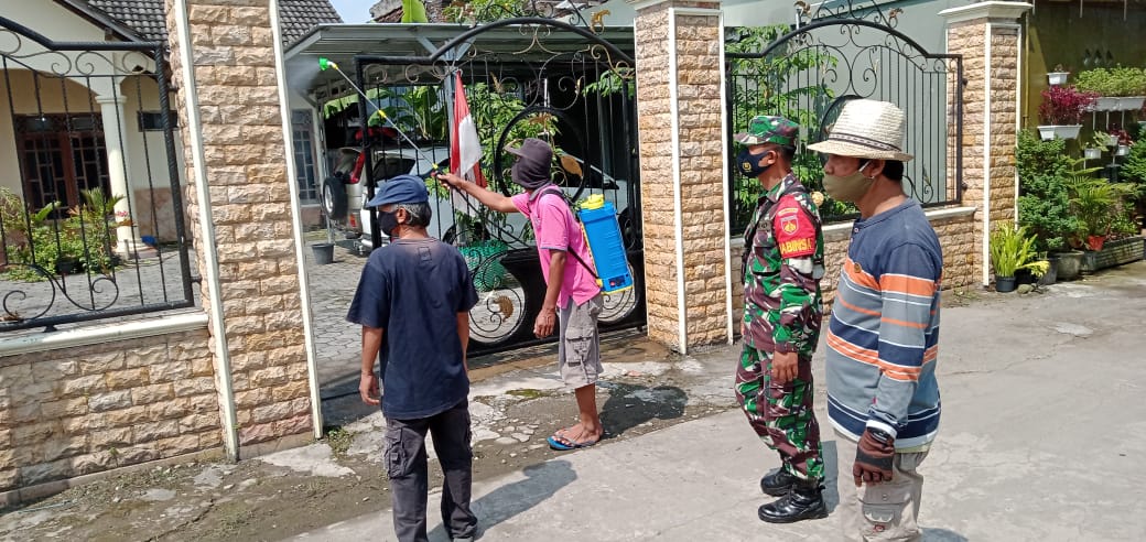 Hal ini dilakukan untuk mencegah penyebaran virus corona (Covid-19), Babinsa bersama Tim PPKM Mikro melaksanakan penyemprotan secara berkala bersama warga Dukuh Kunden Desa Jetiswetan Kecamatan Pedan. Penyemprotan Disinfektan tersebut tidak hanya di tempat umum melainkan sampai di rumah Warga.
