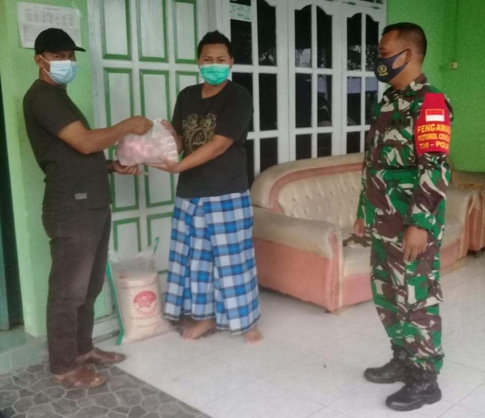 Terdorong hal ini, Babinsa Desa Pepe Serda Agus Rohmadi mendampingi Perangkat Desa dan Bidan Desa Pepe melakukan edukasi serta mensosialisasikan Prokes dan memberikan sembako bagi warga binaannya yang terdampak Covid 19.