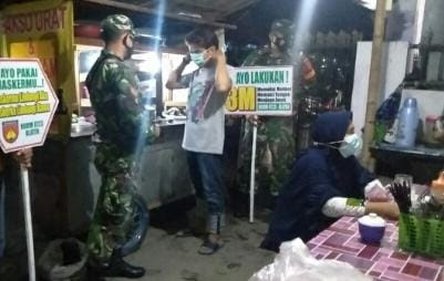 Klaten – Pelda Wiradi Babinsa Desa Bulan dan Pelda Agus Subagyo Babinsa Koramil 22 Wonosari Kodim 0723 Klaten melaksanakan kegiatan Penegakan Disiplin (Gakplin) Protokol Kesehatan yang dilaksanakan bertempat di tempat keramaian Di Desa Hulan Kecamatan Wonosari Kabupaten Klaten,(5/3/2021)