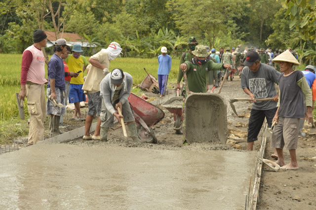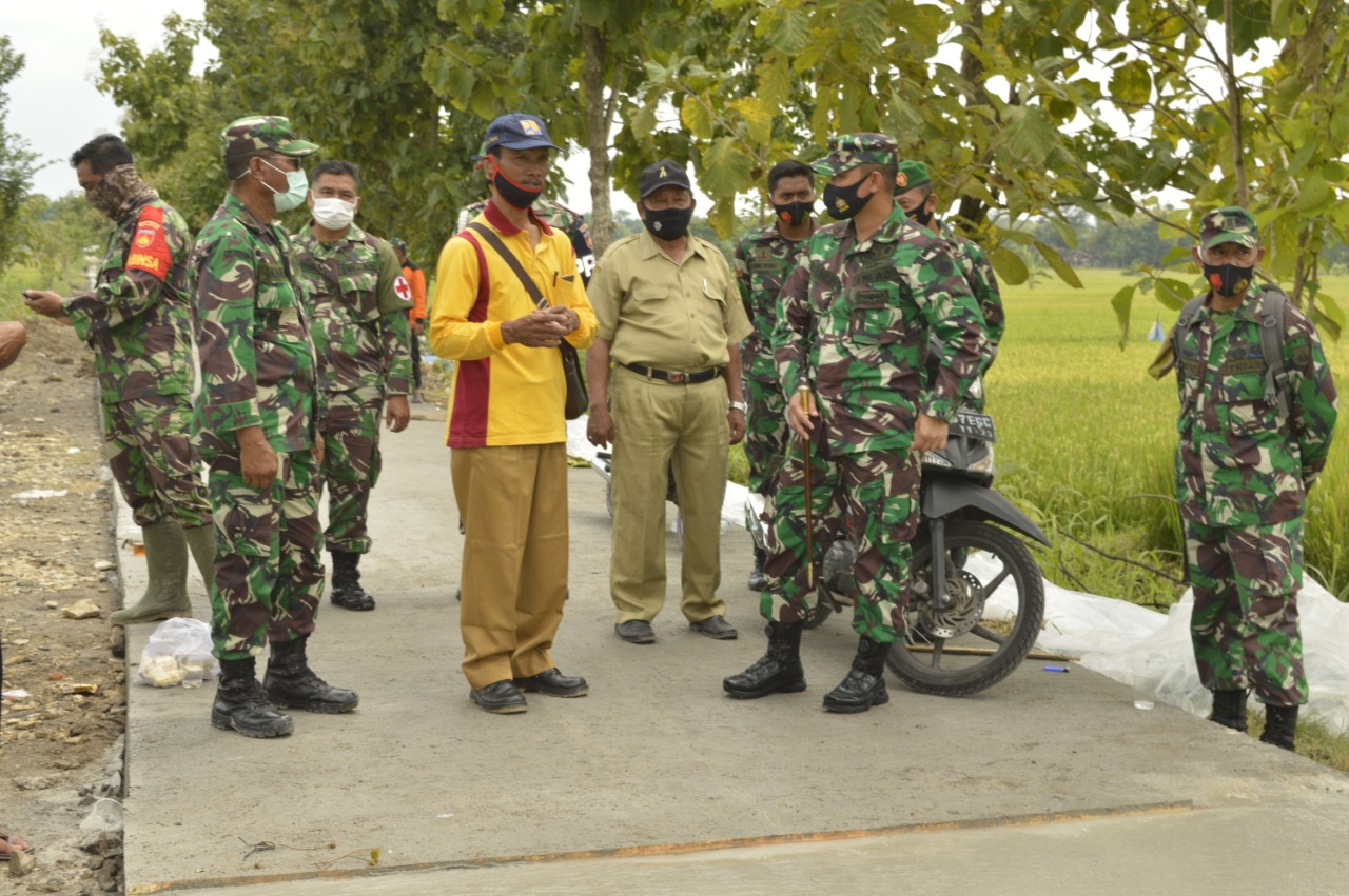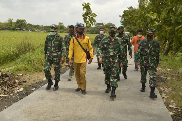 Klaten – Komandan Kodim 0723 Klaten Letkol Inf Joni Eko Prasetyo, S.I.P meninjau pelaksanaan TMMD Sengkuyung Tahap I di Desa Kerten Kec Gantiwarno Kab Klaten untuk mengecek pelaksanaan Betonisasi Jalan. (08/03/21)