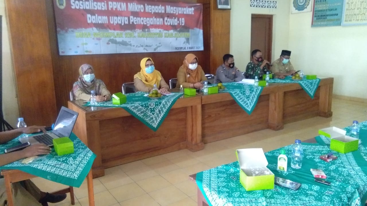 Klaten – Dalam upaya pencegahan penyebaran covid-19 di wilayah Kecamatan Kalikotes Muspika Kecamatan Kalikotes menyelenggarakan kegiatan sosialisasi Pemberlakuan Pemberlakuan Kegiatan Masyarakat (PPKM) Mikro di Desa Ngemplak Kecamatan Kalikotes Kabupaten Klaten. (09/03/2021 )