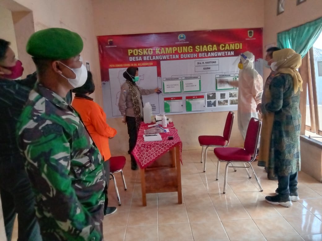 Klaten – Danramil 24/Klaten utara, Kapten Inf Sukatman mendampingi kunjungan Team Asintensi Polda Jateng yang dipimpin AKBP Dra Dwi Ratnawati di Posko Kampung Siaga Candi Desa Belang wetan Kecamatan Klaten utara. Selasa (02-03-2021)
