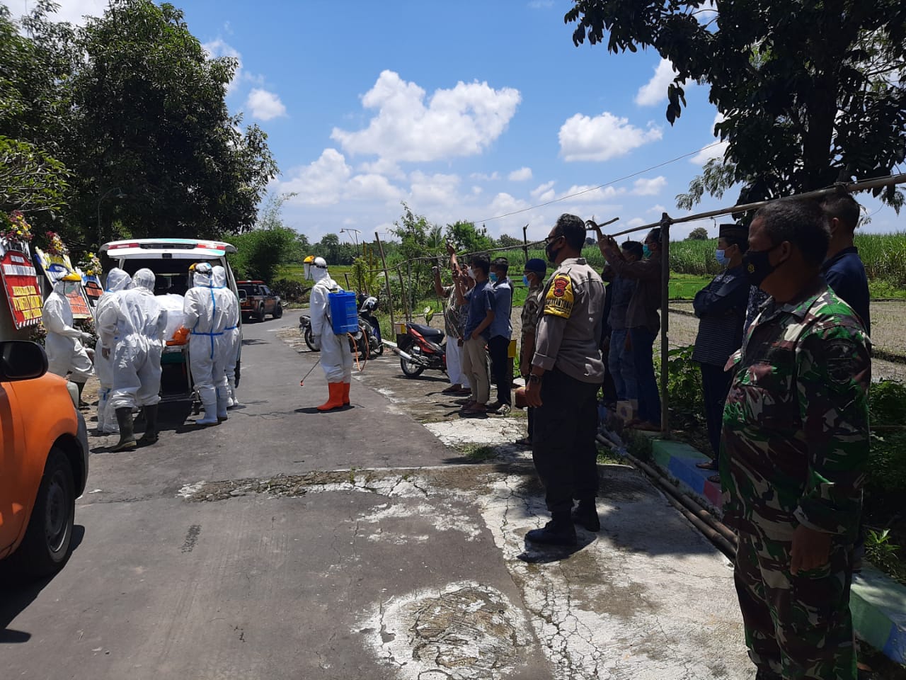 Pelaksanaan pemakaman almarhumah ibu Hj Maryatun Rohmad dilaksanakan secara protokoler Covid -19 oleh tim BPBD kab Klaten, dibantu oleh Babinsa, Bhabinkamtibmas dan relawan walaupun yang bersangkutan bukan pasien Covid-19. Dalam proses pemakaman juga disaksikan oleh warga sekitar yang berada diluar komplek makam.
