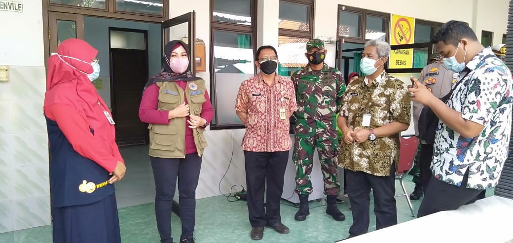 Hj Sri Mulyani mengecek kesiapan Nakes Puskesmas Wonosari 1 serta berikan semangat dan mengimbau kepada warga Wonosari yang lansia agar tidak takut untuk divaksin.