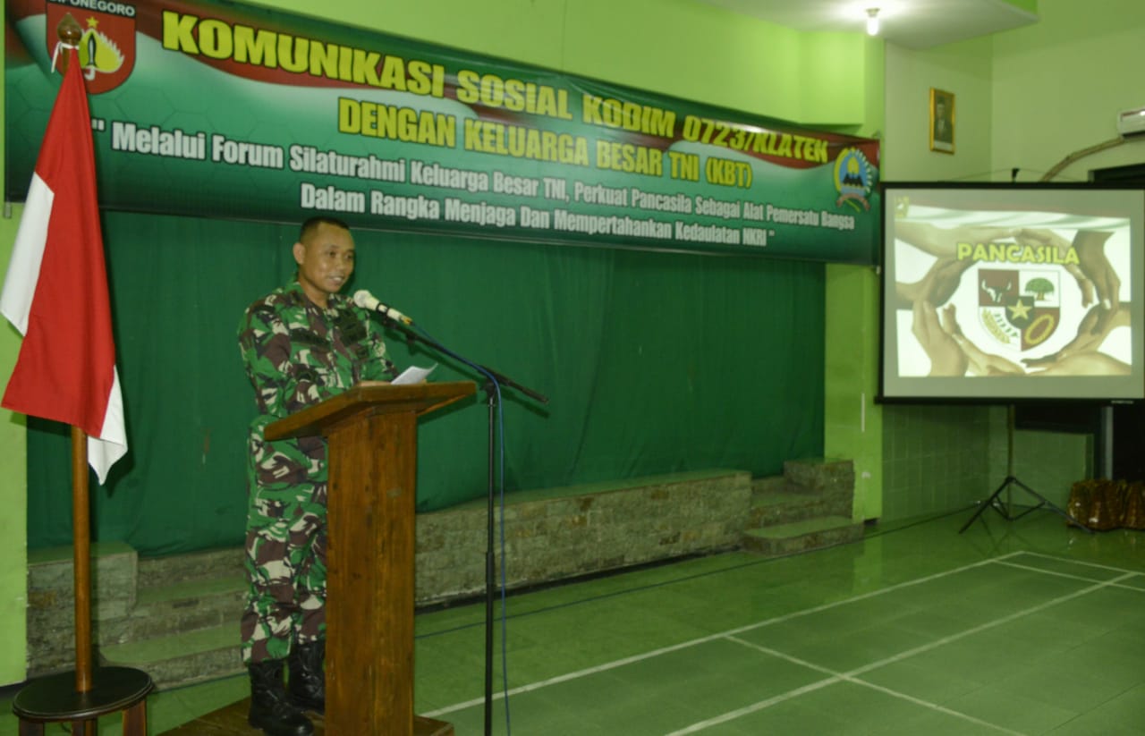 Klaten – Komando Distrik Militer (Kodim) 0723 Klaten menyelenggarakan Komuinikasi Sosial dengan Keluarga Besar TNI (KBT) wilayah Kabupaten Klaten di Aula Makodim 0723 Klaten Jl Pemuda No 08 Klaten dengan tetap mengedepankan protokoler kesehatan covid 19. Kamis (25/03/21)