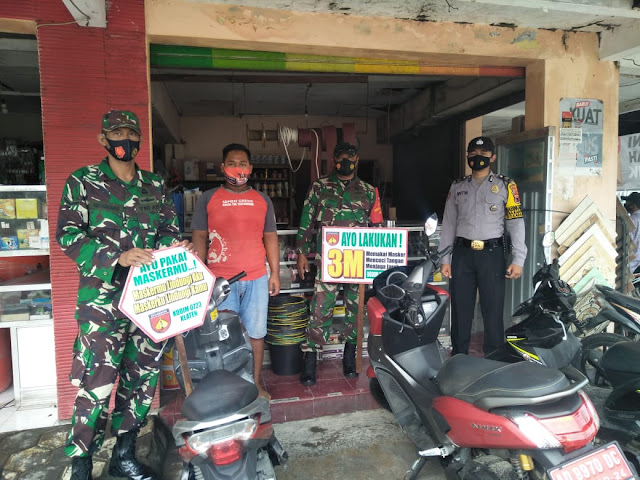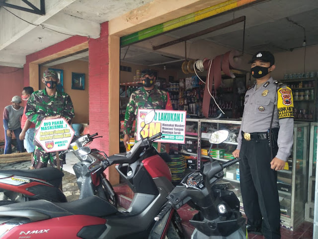 Klaten – Pelda Sunarto beserta 3 Anggota Koramil 17/Karangdowo,Kodim 0723/Klaten,Bersama Polsek Karangdowo Briptu Aditya Melaksanakan Operasi masker di Toko Bangunan Bpk Anggit Jalan karangdowo- Pedan,Kecamatan Karangdowo kabupaten Klaten.Kamis (04/03/2021)
