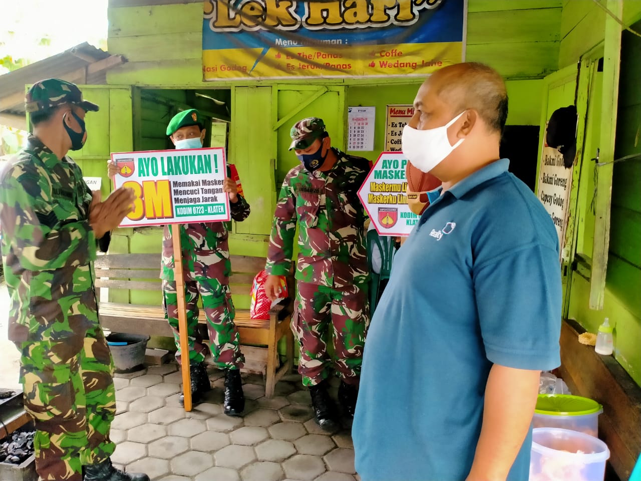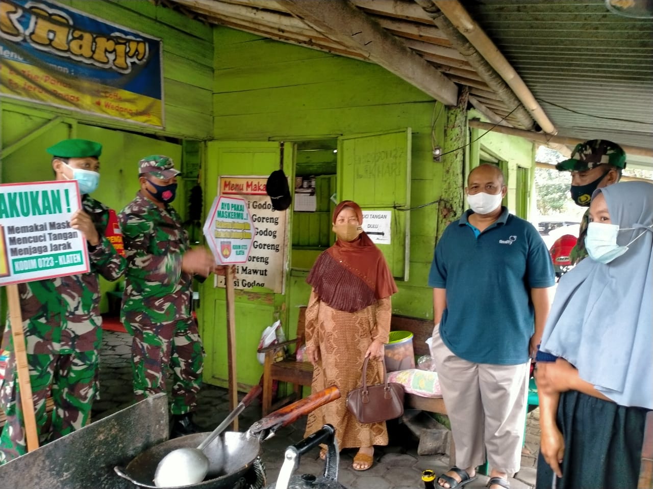 Klaten | Koramil 08 Ngawen melakukan Penegakan Disiplin Protokol Kesehatan Covid 19 di Warung Makan Bakmi Jowo Desa Kahuman Kec. Ngawen Kab. Klaten (12/03/2021)