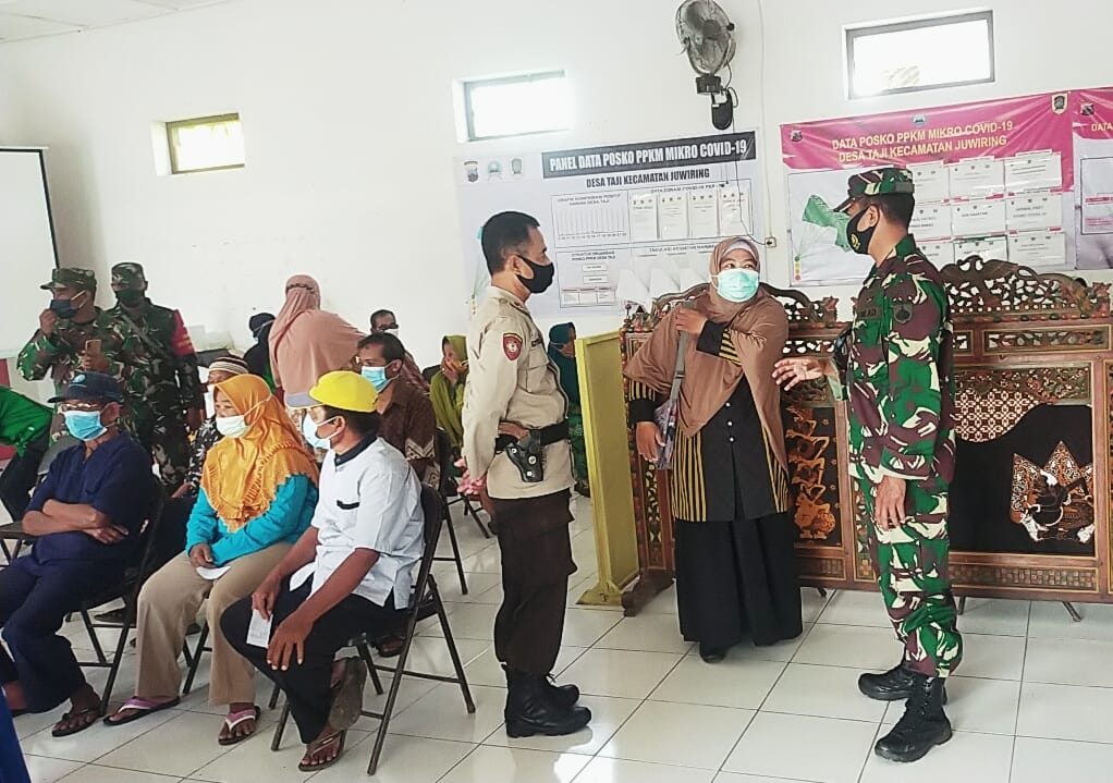 Sementara itu Danramil 21/Juwiring Kapten Cba Maliana Heri Sugiarto menghimbau kepada masyarakat Desa Taji khususnya, untuk tidak takut divaksin, sebab sudah banyak contohnya baik itu TNI-Polri dan juga tenaga kesehatan yang telah divaksin dan tidak ada kejadian ikutan pasca vaksinasi.