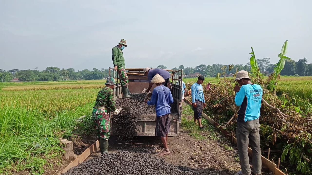 Klaten – Walaupun saat ini masih pandemi Covid-19, hal itu tidak mengurangi semangat Babinsa untuk tetap melaksanakan gotong-royong bersama rakyat.