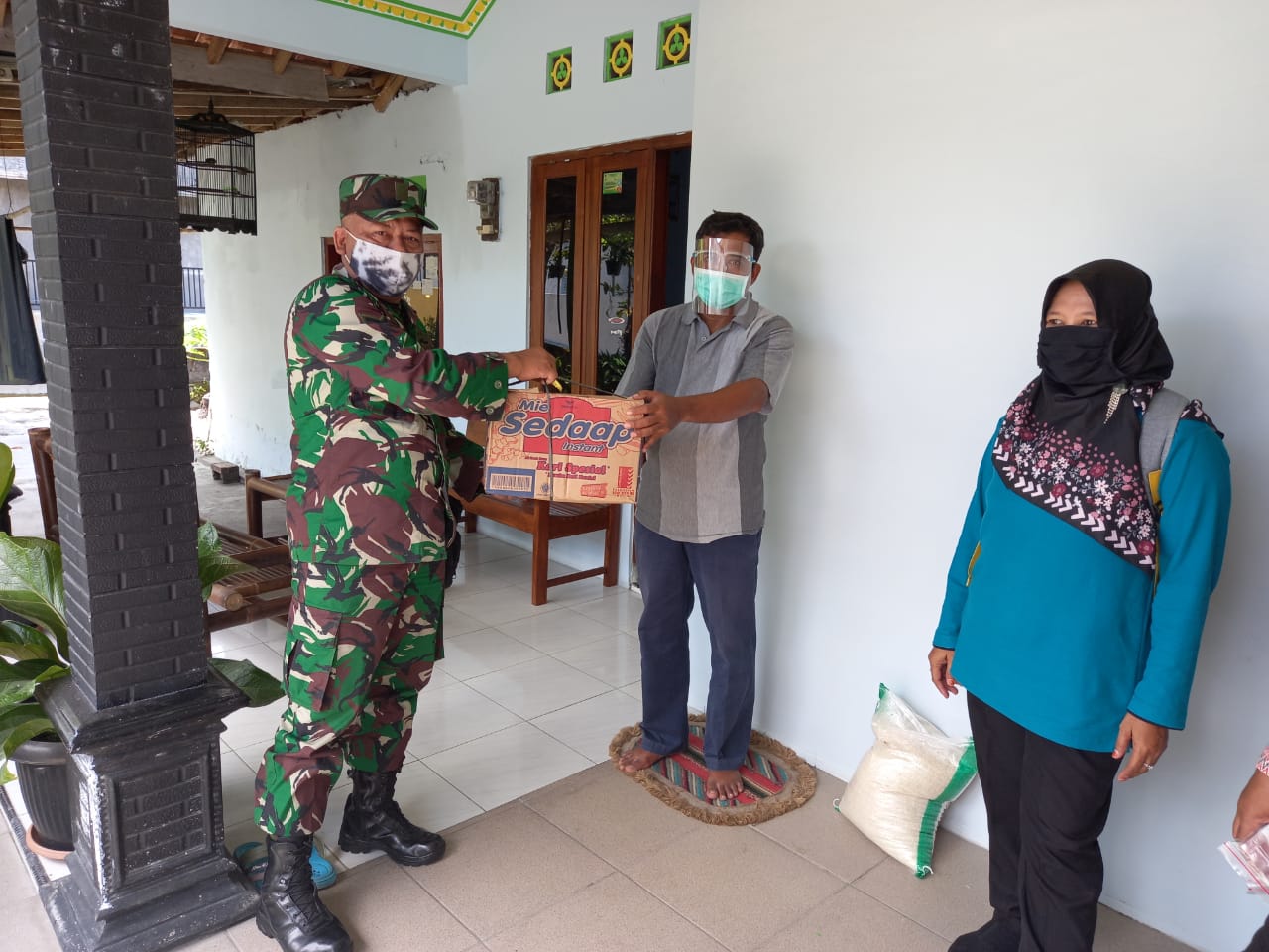 Klaten – Babinsa Koramil 12/Manisrenggo kodim 0723/Klaten Sertu Triyono melaksanakan kegiatan Pengecekan dan penyerahan bantuan sembako kepada warga masyarakat yg melakukan isolasi mandiri akibat terdampak penyebaran Covid-19, di desa Tanjungsari kec Manisrenggo. 18/04/2021.