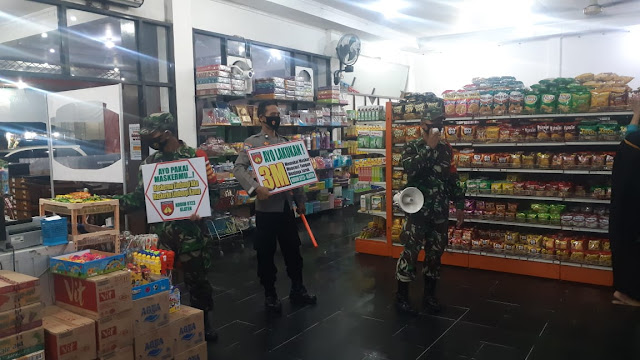 Klaten – Dalam rangka mencegah penyebaran Covid-19, Babinsa Koramil 04/Pedan Kodim 0723/Klaten Bersama Bhabinkamtibmas Polsek Pedan melaksanakan penegakan disiplin Protokol Kesehatan dan Sosialisasikan 3M di Pertokoan di Jalan Bhayangkara Desa Sobayan Kecamatan Pedan. Senin ( 05/04/2021 )