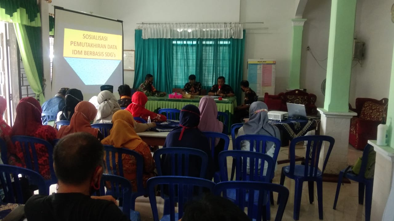 Klaten | Babinsa Bakungan Serda Ibnu Nugroho Anggota Koramil 17/Karangdowo, Kodim 0723/klaten bersama kepala desa beserta perangkat desa Bakungan, Bhabinkamtibmas,ketua RT, RW dan tokoh masyarakat desa Bakungan melaksanakan kegiatan sosialisasi pemuktahiran data IDM berbasis SDG’S di Aula balai desa Bakungan kec karangdowo, kab Klaten.Selasa 6/04/2021.