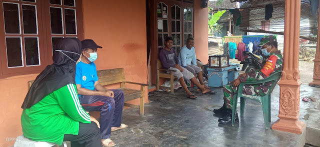Babinsa memaksimalkan penyampaian informasi kepada masyarakat binaan tentang cara Pencegahan Penularan Virus Covid 19.