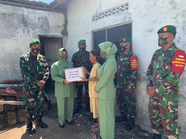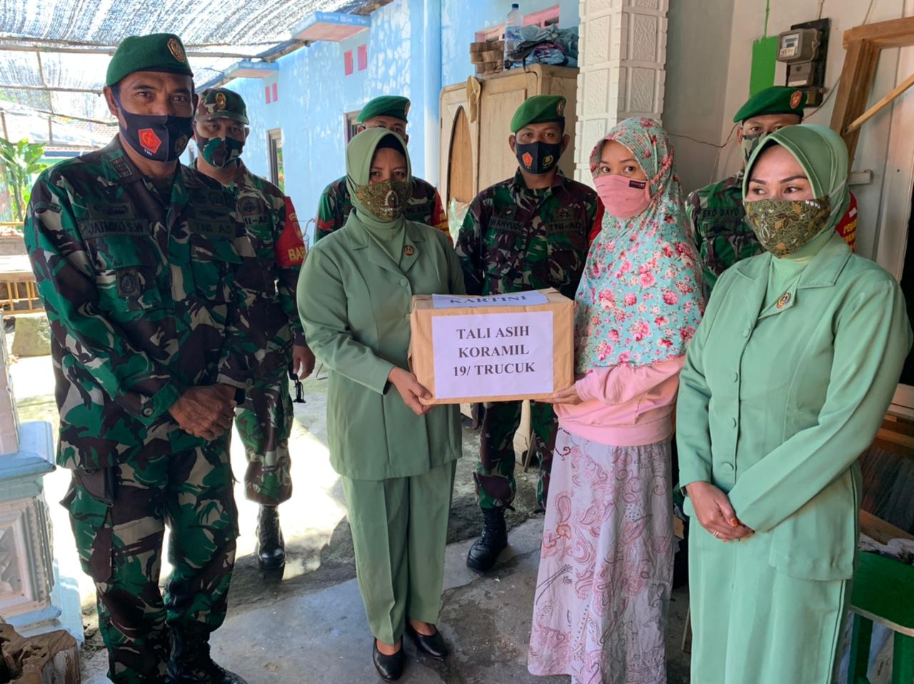 “Pemberian Tali Asih berupa paket sembako di lakukan di lingkungan sekitar Koramil 19/Trucuk  Danramil Persit dan Babinsa mendatangi langsung para penerima Sembako.