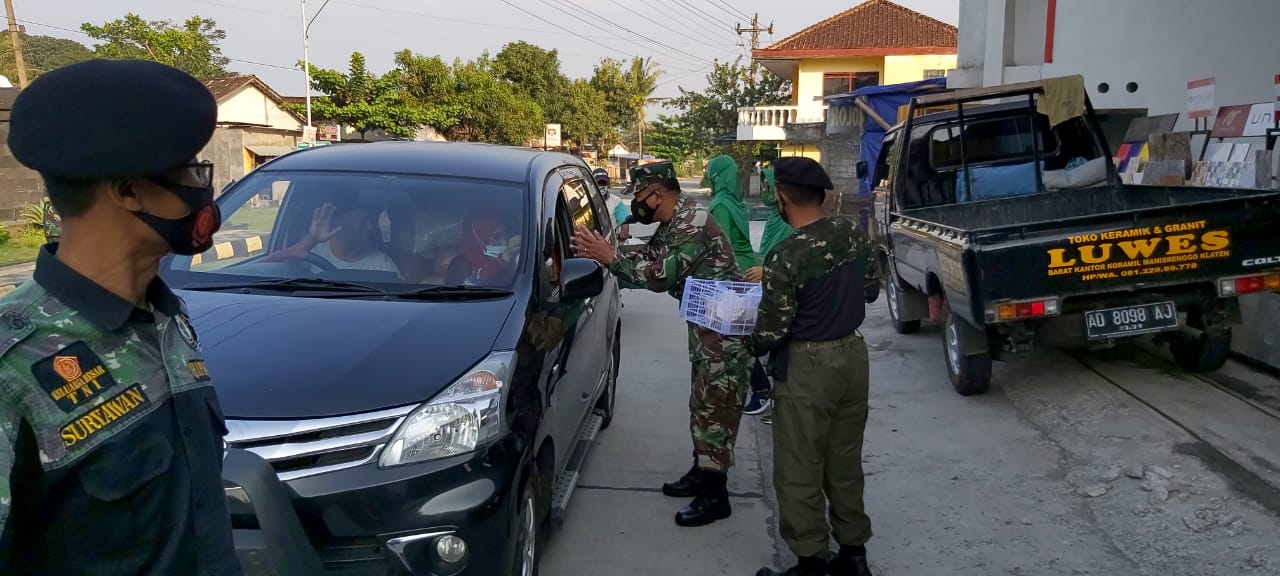 Klaten – Danramil 12/Manisrenggo Kodim 0723 Klaten Kapten Cba Mugiyono dan Persit Kartika Chandra Kirana ranting 13 Van XLIV bersama Hipakad Klaten membagikan ta'jil jelang buka puasa.Sabtu 1/5/2021