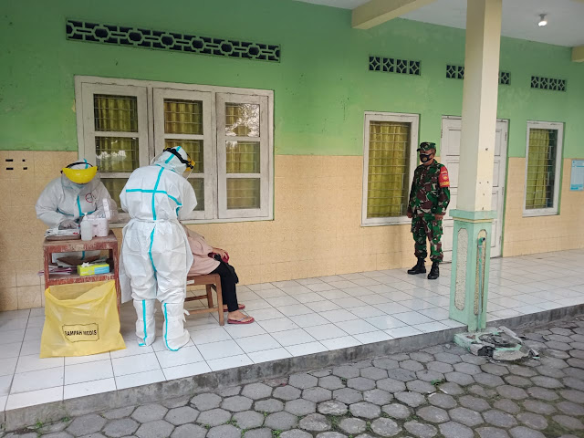 Sertu Sunarto mengatakan tujuan swab adalah untuk mengetahui hasil positip atau negatif yang kontak erat dengan pasien terkonfirm. Di sela sela antrian Babinsa juga mengingatkan protokol kesehatan kepada warga untuk patuh protokol kesehatan.