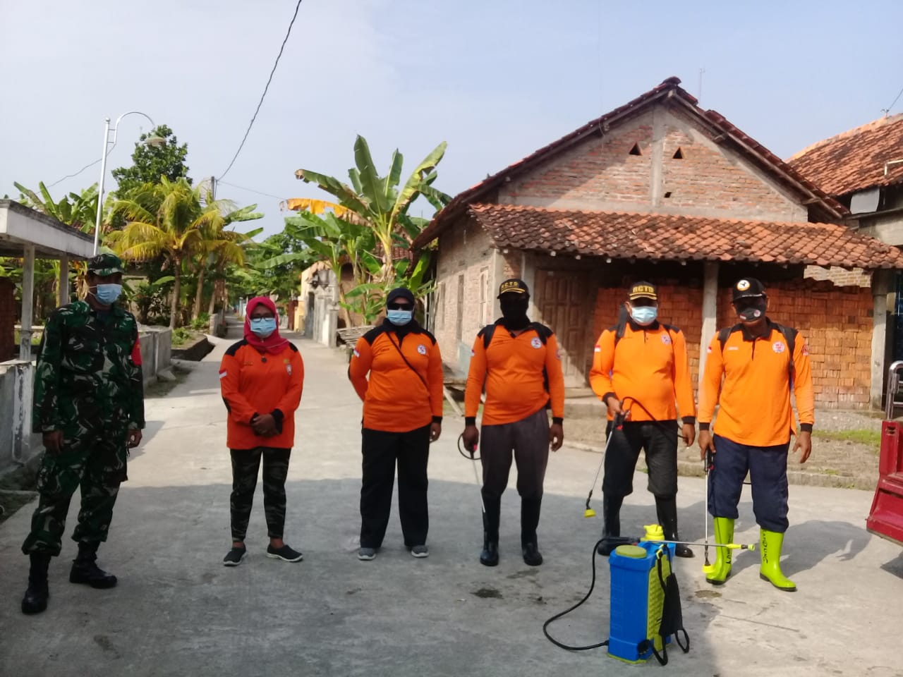 Klaten | Babinsa Tulas Serma Winarno Anggota Koramil 17/Karangdowo,Kodim 0723/Klaten bersama relawan RCTD, perangkat Desa Tulas melaksanakan penyemprotan disinfektan di Dukuh Minggiran RT 09 RW 04 Desa Tulas Kec Karangdowo Kab Klaten.Rabu (09/06/2021)