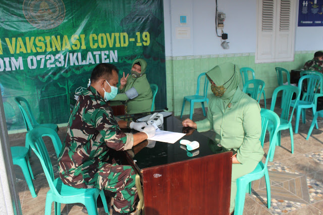 Sementara menurut keterangan dr Gunawan Kepala Klinik Pratama 23 Klaten, hari personel yang tervaksin 61 orang yang terdiri dari personel TNI, PNS, Purnawirawan dan juga Persit.