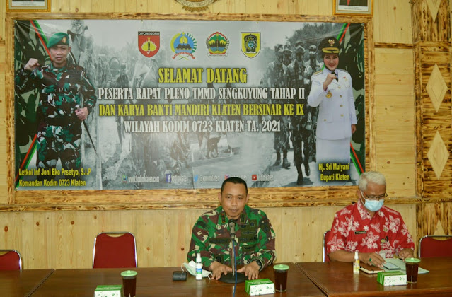 Pada kesempatan tersebut Dandim mengungkapkan bahwa Kodim 0723/Klaten siap mensukseskan pelaksanaan TNI Manunggal Membangun Desa (TMMD) Sengkuyung Tahap II dan Karya Bhakti Mandiri Klaten Bersinar (KBMKB) ke-IX Wilayah Kodim 0723/Klaten Tahun 2021.