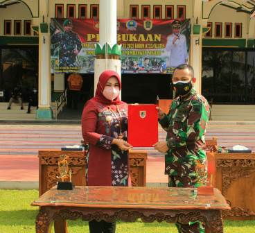 Klaten – Pembukaan TNI Manunggal Membangun Desa (TMMD) Sengkuyung Tahap II Di Desa Krakitan Kecamatan Bayat Dan Karya Bhakti Mandiri Klaten Bersinar (KBMKB) Ke-9 Di Desa Basin Kecamatan Kebonarum Kabupaten Klaten Tahun 2021 terlaksana di Halaman Pendopo Kabupaten Klaten. Selasa (15/06/21)