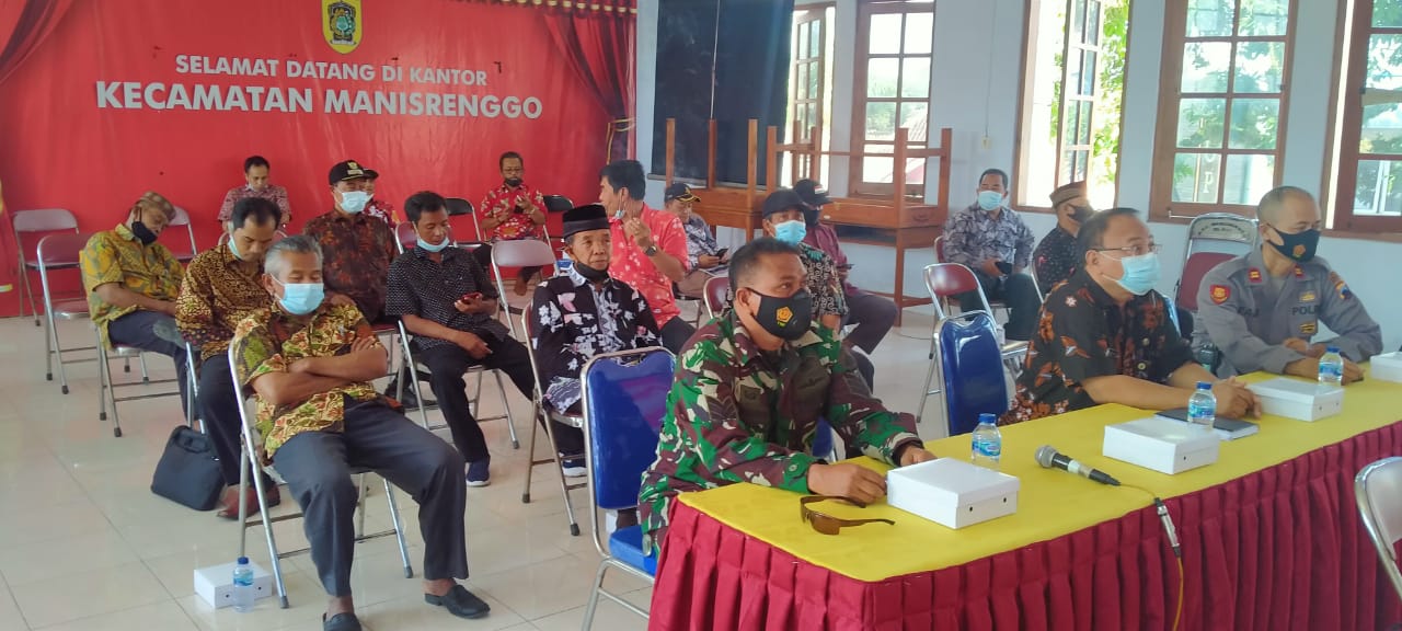Dalam kegiatan zoom meeting di hadiri oleh  Camat Manisrenggo Raharjo Budi Setiyono S.Sos Msi, Danramil  Koramil 12/Manisrenggo yang diwakili Babinsa Serka Purwanto, Kapolsek manisrenggo Iptu Fajar Damhudi SH dan  Kades se kecamatan Manisrenggo.