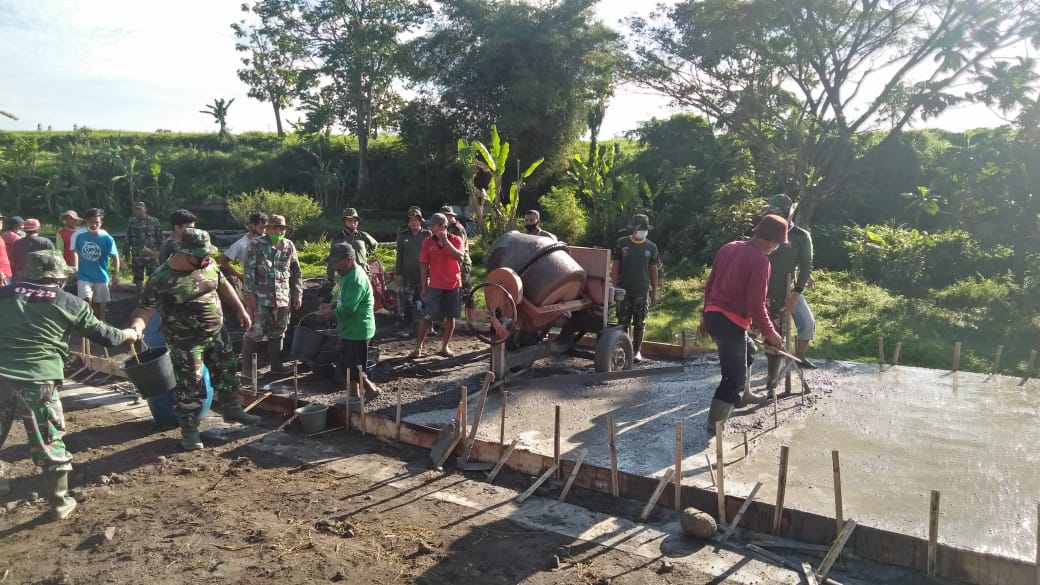 Klaten – Hal tersebut kembali diperlihatkan dalam kegiatan Karya Bhakti Mandiri Klaten Bersinar (KBMKB) yang dilaksanakan TNI jajaran Kodim 0723/Klaten di Desa Basin Kecamatan Kebonarum, Kabupaten Klaten dalam rangka pengecoran jalan, Kamis (24/6/2021).