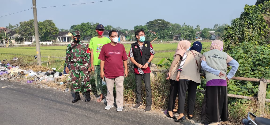 Klaten – Serda Sri Nuryanto Babinsa Koramil 22 Wonosari Kodim 0723 Klaten bersama Polsek Wonosari melaksanakan pengamanan pengerukan sampah di Jalan Raya Daleman – Karangdowo di Desa Gunting Kecamatan Wonosari Kabupaten Klaten,(6/6/2021)