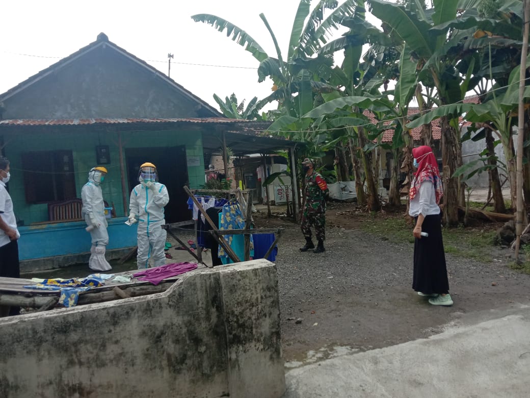 Klaten – Pelda Agus Subagyo Babinsa Desa Pandanan Koramil 22 Wonosari Kodim 0723 Klaten  Melaksanakan Pendampingan Tenaga Kesehatan  Puskesmas Wonosari dalam Kegiatan  Tracing di Dukuh Padasan RT 11 RW 05 Desa  Pandanan Kecamatan Wonosari Kabupaten klaten,(1/7/2021)