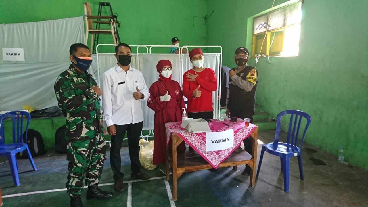 Babinsa Bersama Bhabinkamtibmas Ceper Pantau Vaksinasi Massal