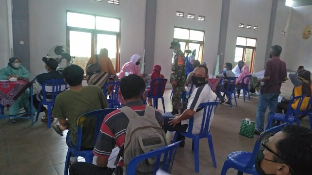 Demi kelancaran pelaksanaan vaksinasi Covid-19 kepada masyarakat Kecamatan Kebonarum, Babinsa Koramil 06/Kebonarum Kodim 0723/Klaten Pelda Sukijan beserta satu orang anggota Sertu Harsana mendampingi penyuntikan Vaksin Sinovac kepada masyarakat Kecamatan Kebonarum yang bertempat di Gedung Serbaguna Desa Pluneng ,Kecamatan Kebonarum, Kabupaten Klaten, Rabu (15/09/2021)