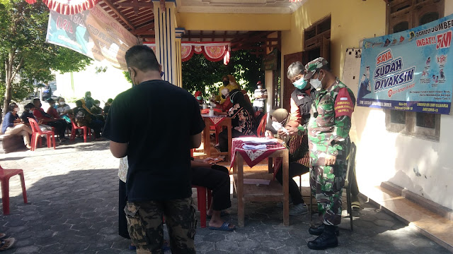 Danramil 19 Trucuk Kapten Inf Jatmiko Sujarwo mengingatkan kepada Babinsa untuk selalu melaksanakan pendampingan dan pemantauan dalam setiap kegiatan Vaksinasi.