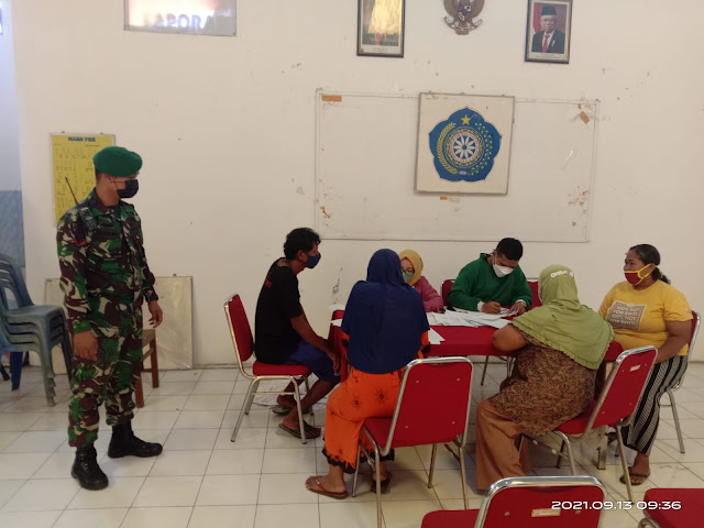 Klaten | Kegiatan gerai vaksinasi Covid-19 yang saat ini terus ditingkatkan merupakan program pemerintah yang wajib dilaksanakan guna melawan penyebaran virus Covid-19. Kali ini Babinsa Kelurahan Pokak Koramil 23/Ceper Kodim 0723/Klaten Kopda Sudomo melaksanakan pengamanan dan pendampingan kegiatan vaksinasi Covid-19 di Kantor Kelurahan Pokak Kecamatan Ceper Kabupaten Klaten, Senin (13/09/2021)
