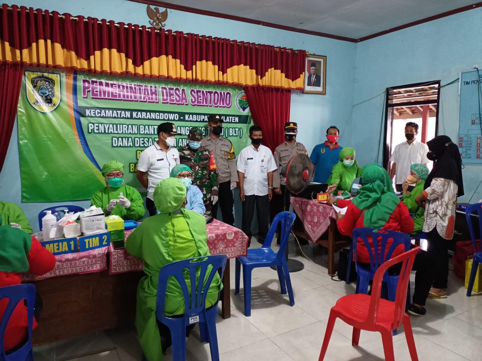 Klaten  | Serda Lambang  Babinsa Sentono Koramil 17/Karangdowo kodim 0723/Klaten Bersama Gugas penanggulangan Covid 19 kecamatan Karangdowo Memantau dan amankan jalannya Vaksin zinovac Di balai desa Sentono kec Karangdowo kab Klaten. Rabu  (15/09/2021)